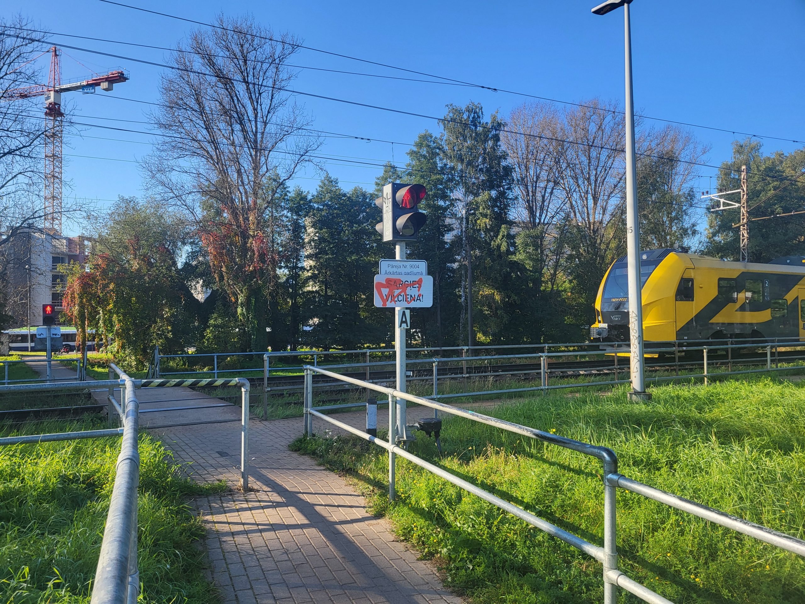 Если автомобильный железнодорожный переезд в целом оборудованы неплохо - есть и сирена, и шлагбаум и семафор - то с пешеходными переходами через пути между станциями все грустно. К слову, место тут совсем не безлюдное: вдоль железной дороги проложена велодорожка из Риги в Юрмалу, то и дело ездят велосипедисты, а сами рижане прогуливаются вдоль соседней парковой зоны Вец-Аниньмуйжас. Логично, что пешеходные переходы через пути здесь нужны.