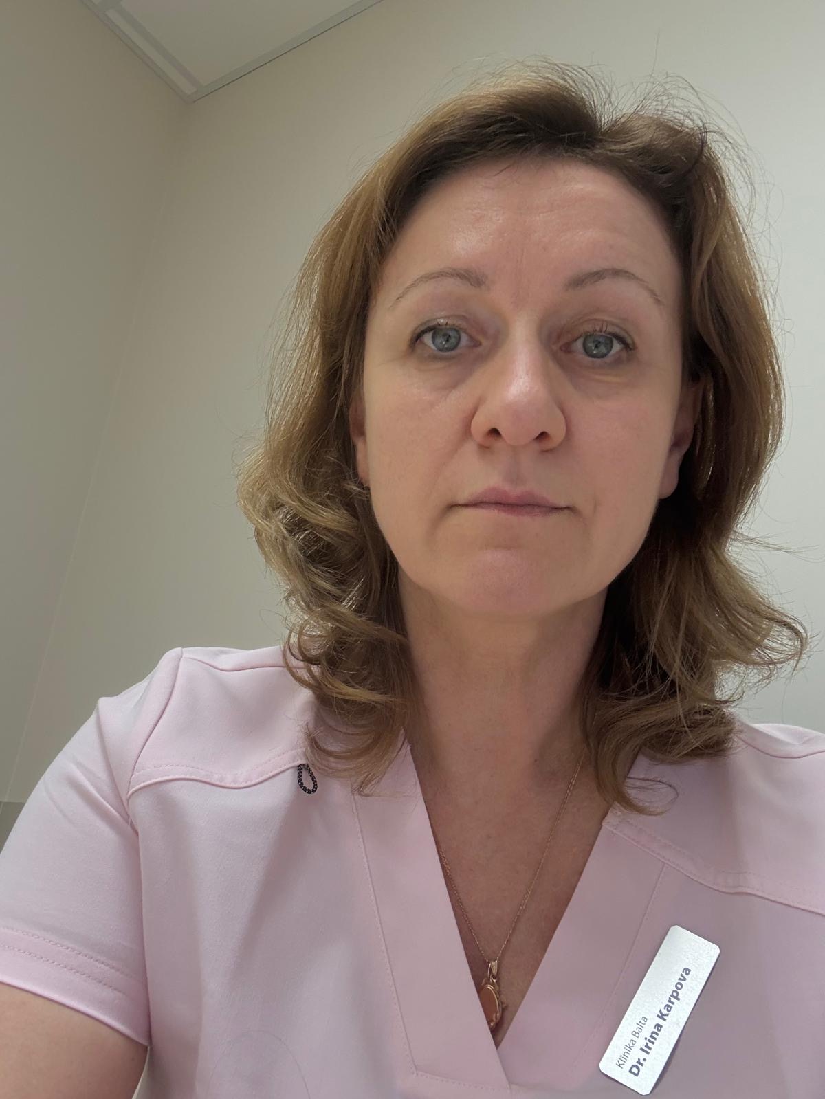 Доктор Klīnika BALTA Ирина Карпова«Не успело пригреть солнце, как я захромала. Спасибо, в рижской Klīnika BALTA (недалеко от железнодорожного вокзала) меня, пенсионерку, приняли так душевно и внимательно, словно только меня и ждали. Врач провела УЗИ-диагностику вен, выявила варикоз – буду лечить, понятен путь решения обнаруженных проблем. Но второе, что не менее важно: подолог без боли обработала врастающие ногти (у меня таких несколько) на ногах и устранила еще, как выяснилось, пяточную мозоль. Это было похоже на чудо – так все она делала профессионально и любезно. Сдала анализ на грибок. Врач Ирина мне объяснила, что, помимо ощутимого дискомфорта (чешутся ноги отчаянно), грибок «портит» весь организм внутри…