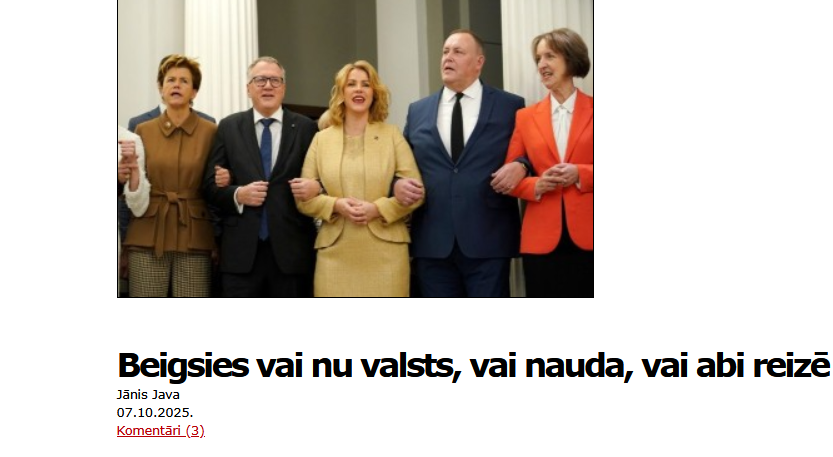 Нет сомнений, что и в будущем различные марксистские (Прогрессивные), социал-демократические (LSDSP/ZZS), национал-социалистические (Восходящее Солнце) партии и их единомышленники — независимо от их заявленных названий — получат поддержку избирателей для еще более жесткого государственного контроля, «доения» оставшихся предпринимателей и «справедливого распределения» заимствованного бюджета.