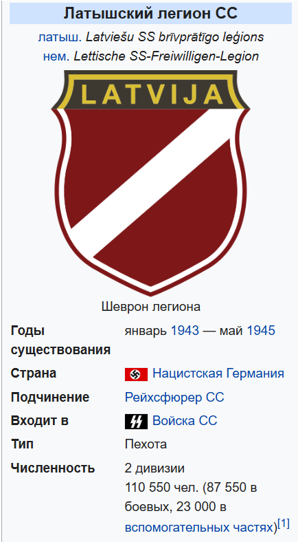 https://ru.wikipedia.org/Как сообщает портал ogrenet.lv, ранее муниципалитет хотел разместить похожий символ (шеврон легионеров) в виде каменного изваяния в скульптурном ансамбле на площади Независимости, но тогда Служба государственной безопасности и Латвийский военный музей забраковали эту идею. Причина: рядом с родовым гербом Вилиса Янумса, основателя организации «Daugavas vanagi», это могло быть истолковано как проявление нацистской символики.