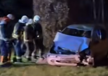 Очевидцы утверждают, что водитель ехал по улице Дунтес на очень высокой скорости и, не справившись с управлением, выехал на трамвайные пути, вылетел на зелёную зону и врезался в дерево, опрокинувшись на бок.