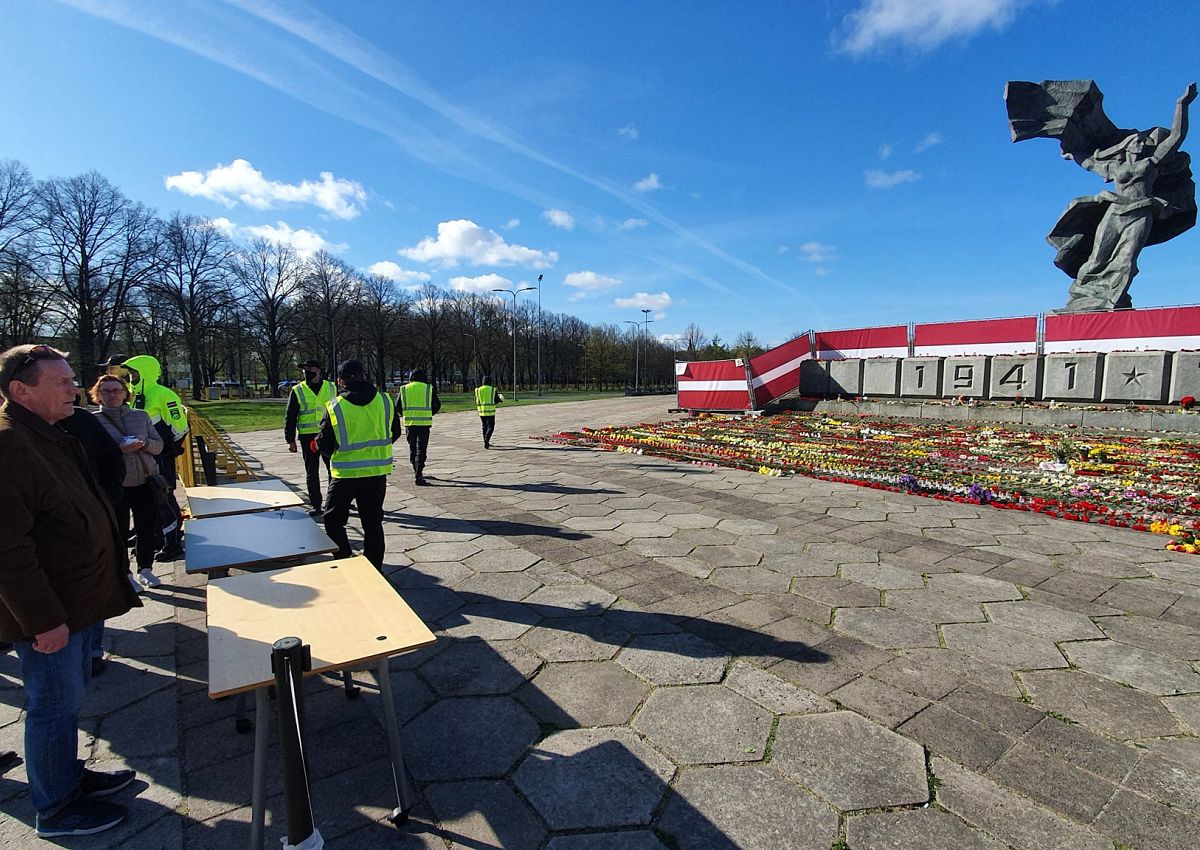 Несмотря на призывы не собираться сегодня у памятников, связанных с советским режимом, люди несут цветы к памятнику освободителям Риги от немецко-фашистских захватчиков в Пардаугаве, хотя и в гораздо меньшем количестве, чем в другие годы.
