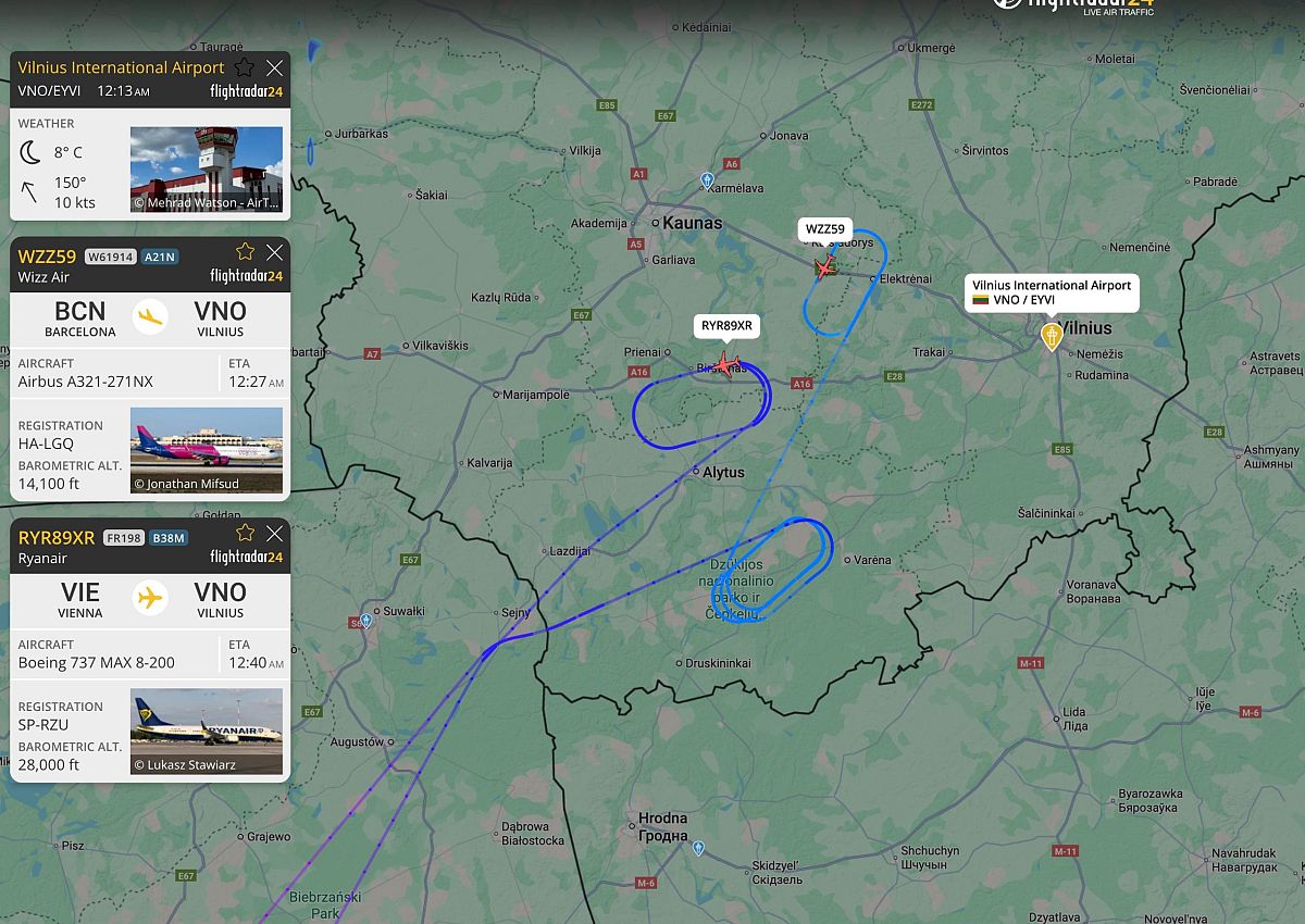 Как сообщает представитель LTOU, рейсы были перенаправлены в Каунас и Ригу.