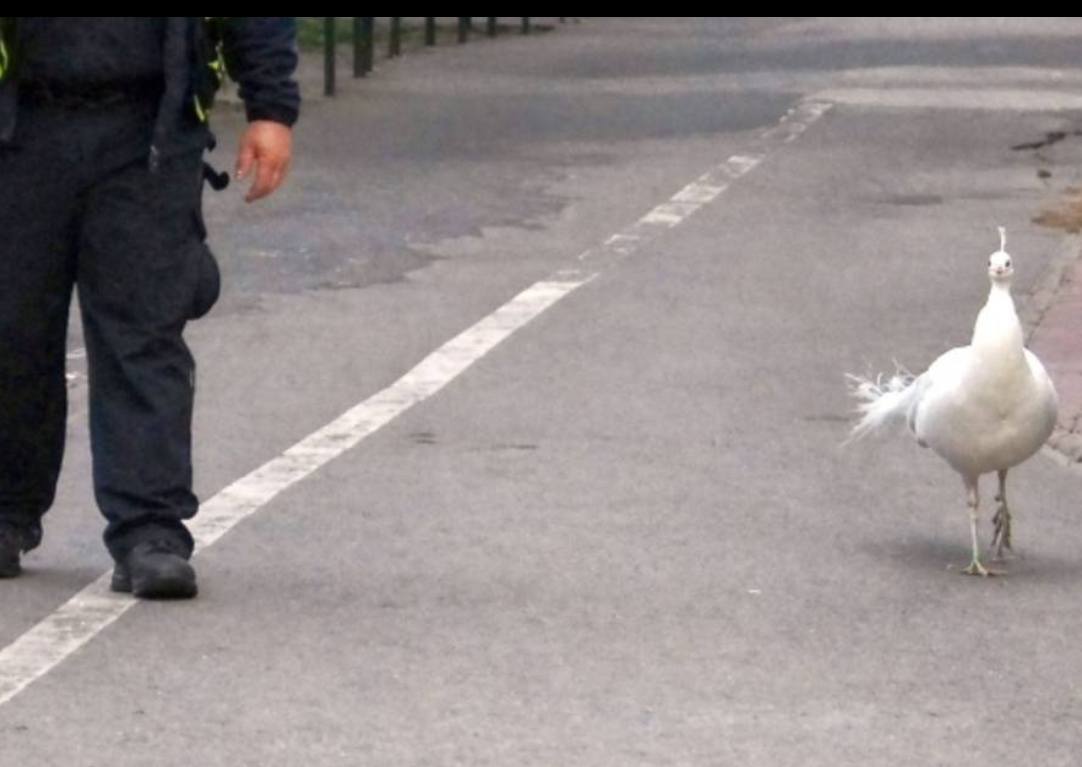 Обычная городская смена — с регулировкой движения и… сопровождением павлина.