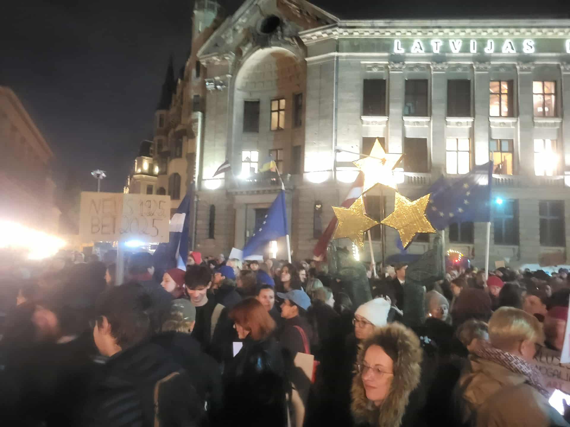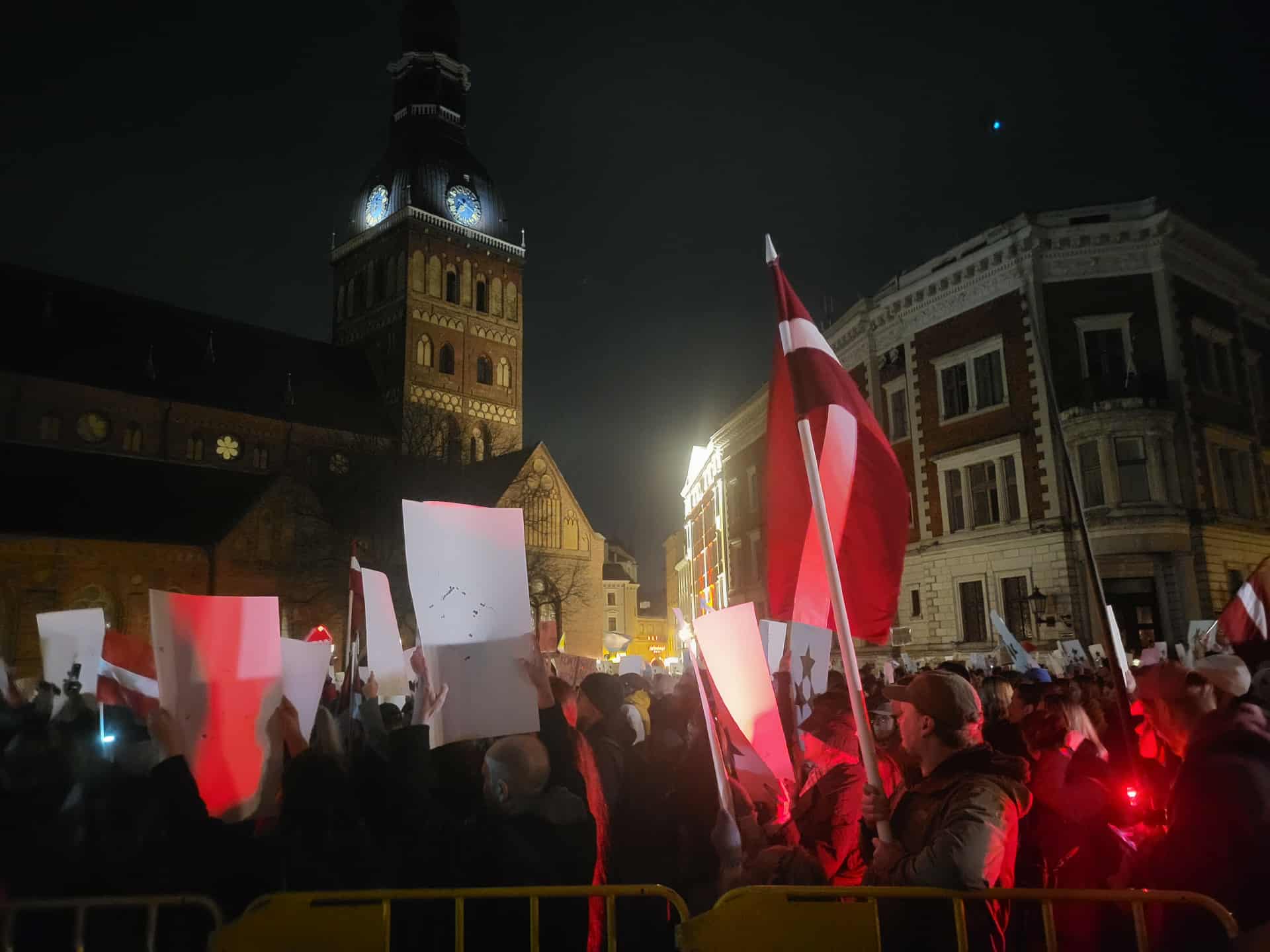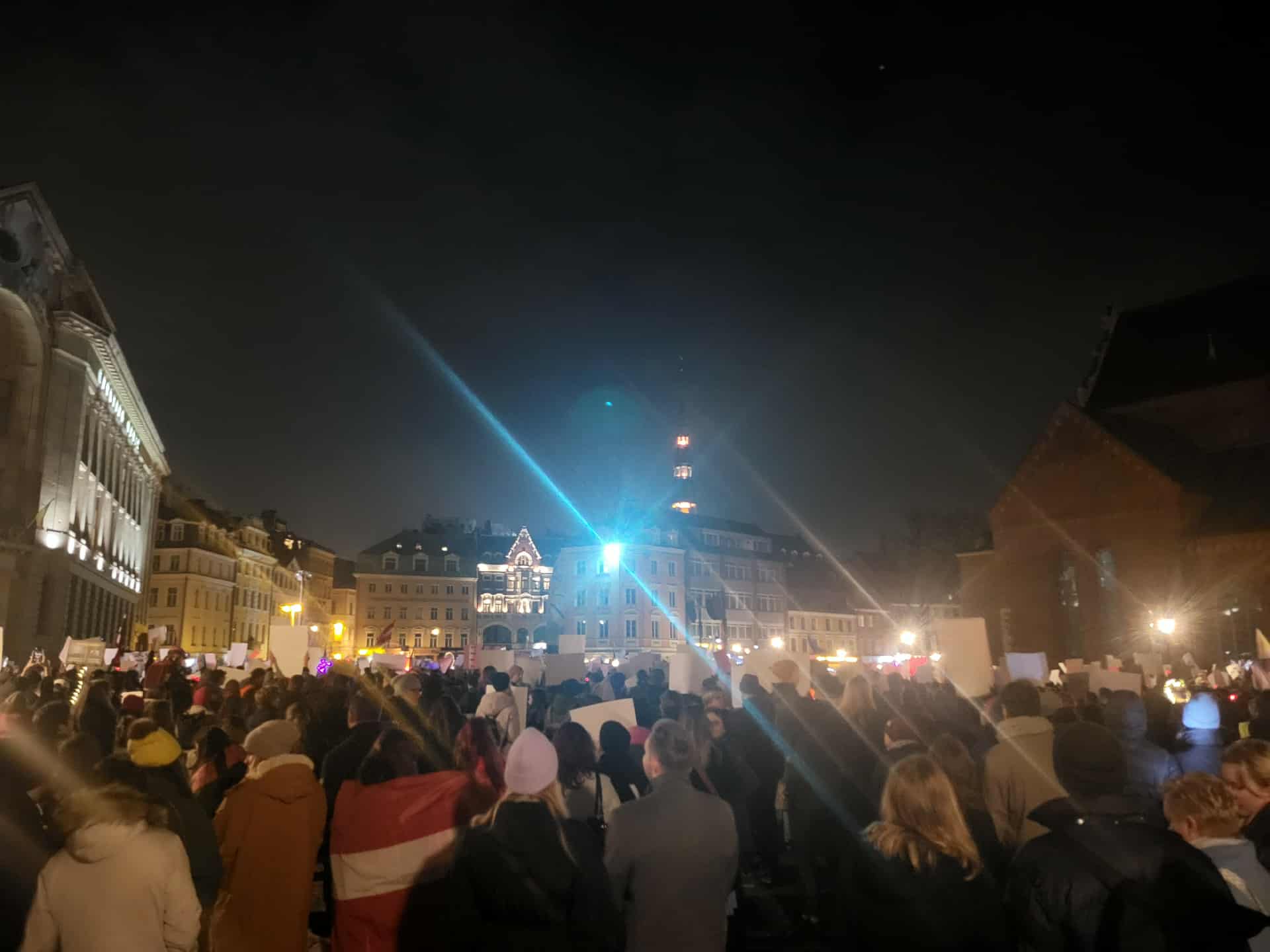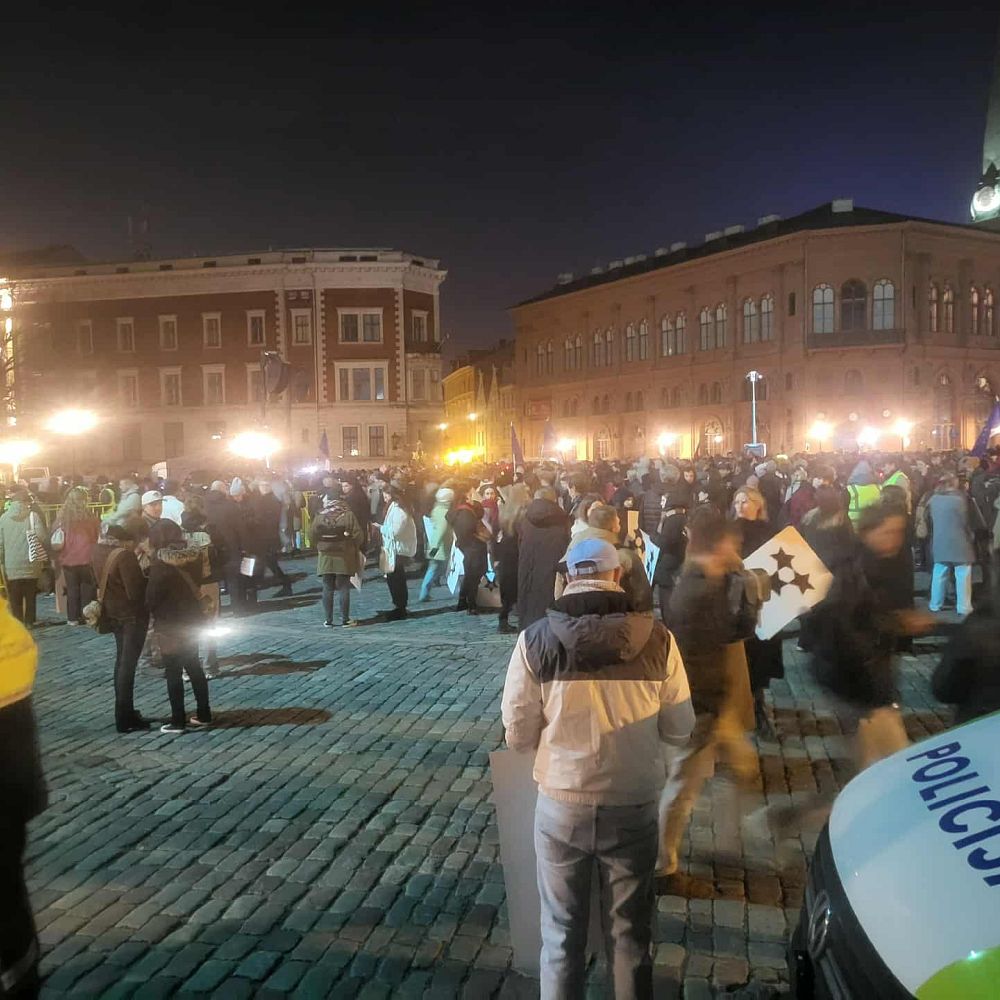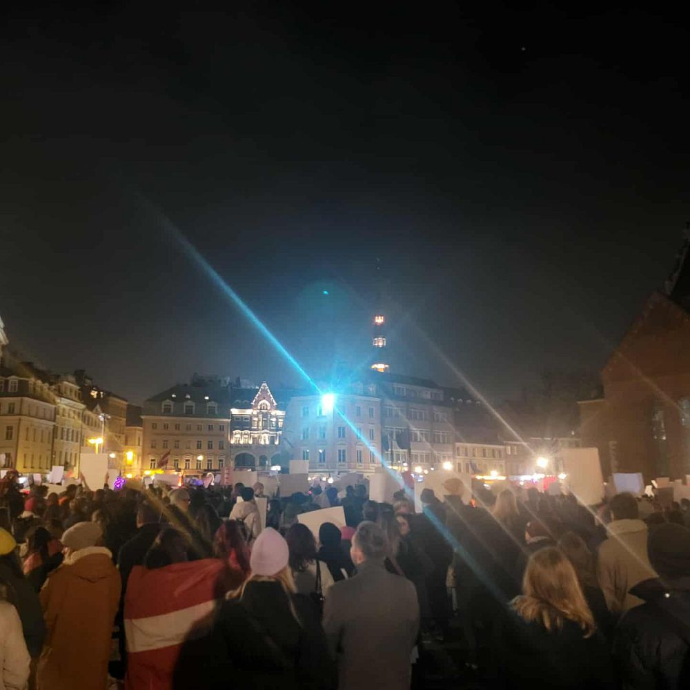 Люди начали стекаться на площадь у Домского собора задолго до начала пикета. Около 18.30 уже собралось около тысячи человек - в основном молодые и прогрессивные. Глядя на юные лица, понимаешь, что протестное движение в Латвии сильно изменилось: если прежде это были в основном пожилые люди, то теперь на улицы вышла молодежь. В основном обеспеченная, у которой есть время думать не о том, как оплатить счета, но и об острых социальных и политических материях.