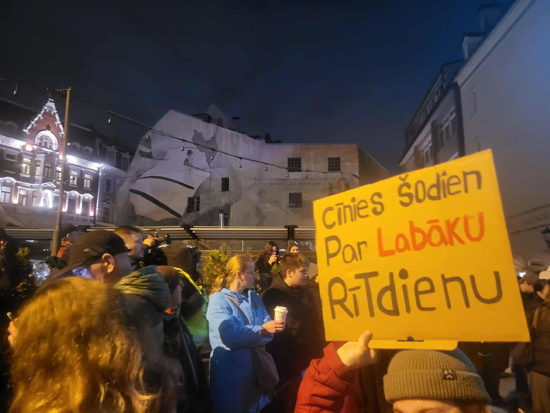 Подобные акции сегодня проходят также в Лиепае, Даугавпилсе, Цесисе, а за пределами страны — у посольств Латвии в Хельсинки, Таллине, Гааге, Вене, Берлине и Осло. Организаторы призывали участников приходить в красной одежде и приносить источники света — фонарики, свечи, светоотражатели и плакаты.