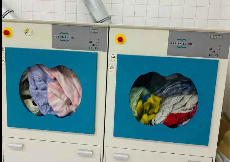 Прачечная работает с 9.00 до 16.00 по рабочим дням. В зале установлены профессиональные стиральные машины, в которых можно постирать даже такие большие вещи, как одеяла. Чего в домашних условиях сделать нельзя.