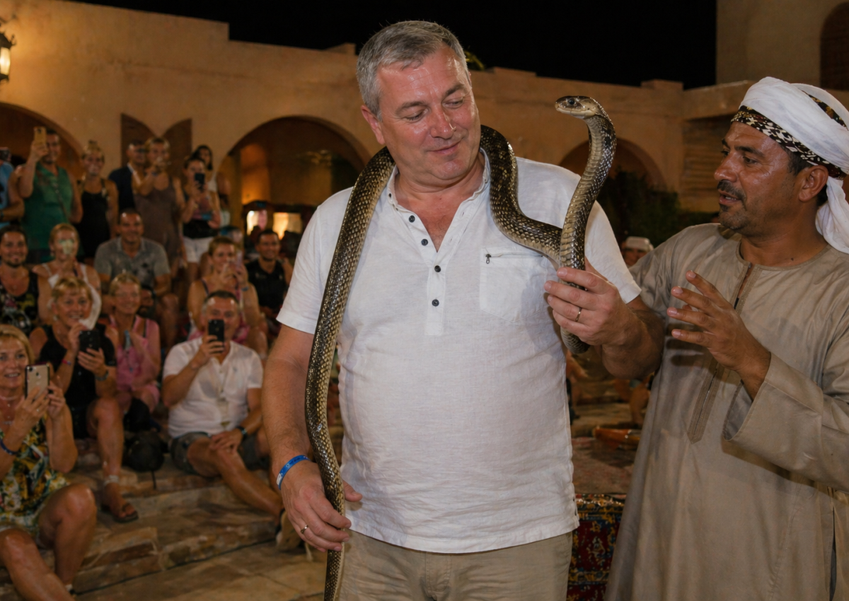 57-летний турист из Германии пришёл на развлекательное шоу с «заклинателем змей» в одном из отелей Хургады. Всё шло по привычному сценарию — змей давали подержать зрителям, он обвивались вокруг шеи, создавая эффект безопасного риска.